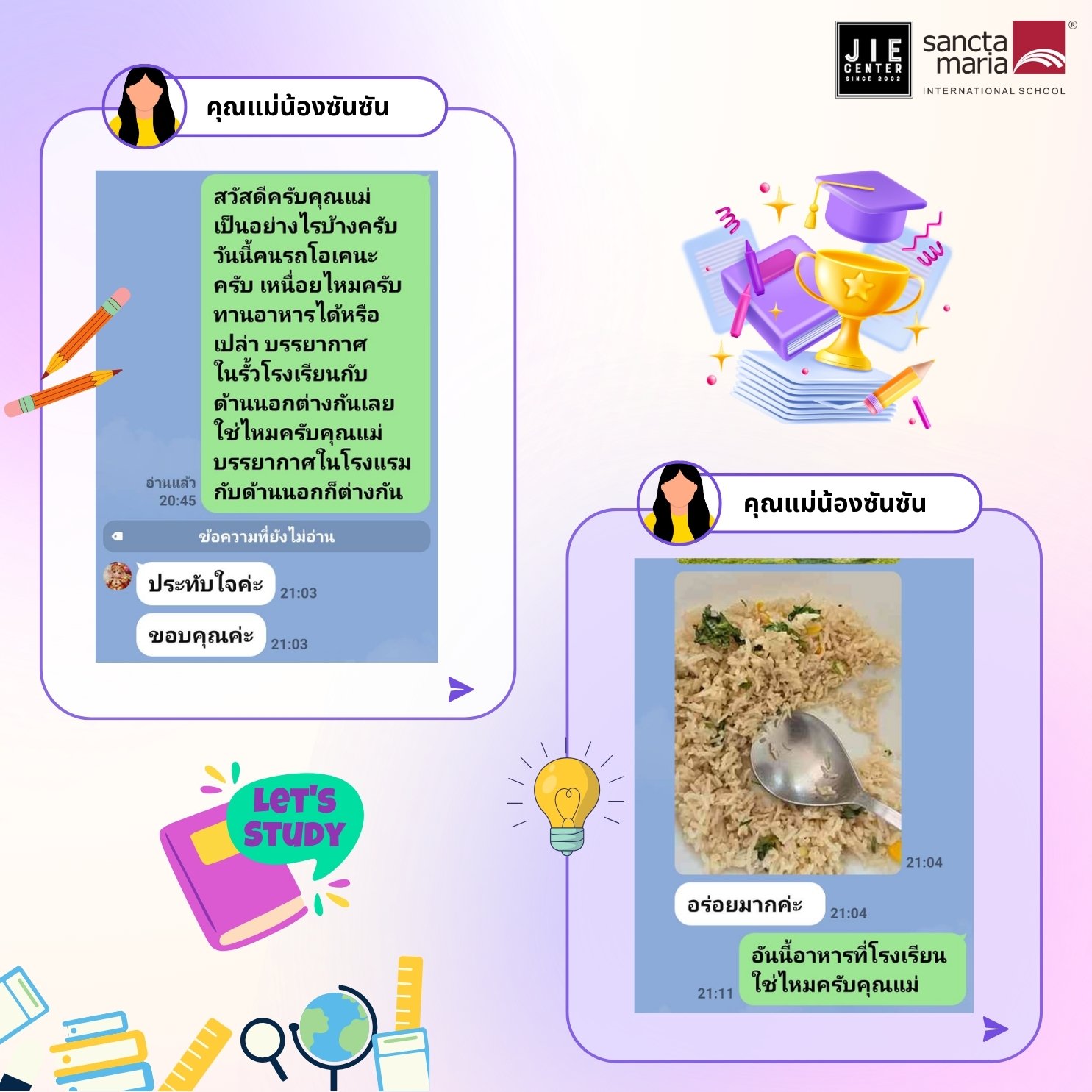 น้องใหม่ป้ายแดงของ Sancta Maria International School คุณพ่อและคุณแม่บินไปส่งน้องด้วยตัวเอง โดยมีเจ้าหน้าที่ของทาง JIE CENTER รอรับที่อินเดีย ขอขอบคุณสำหรับคำชมที่เป็นกำลังใจ และเป็นเกียรติอย่างยิ่งที่คุณพ่อและคุณแม่ ไว้ใจทาง JIE CENTER ในการดูแลน้องค่ะ